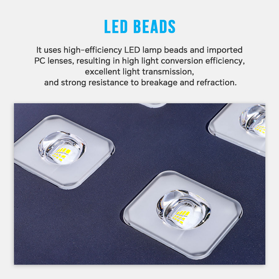 • Premium Hardware Configuration: 65W monocrystalline solar panel (high conversion efficiency) + 48 pcs of 3W high-brightness LED beads, ensuring sufficient brightness and strong durability.