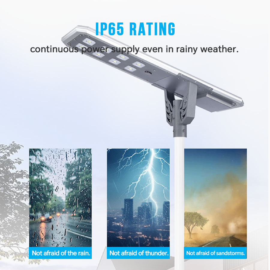 Premium Hardware Configuration: 65W monocrystalline solar panel (high conversion efficiency) + 48 pcs of 3W high-brightness LED beads, ensuring sufficient brightness and strong durability.